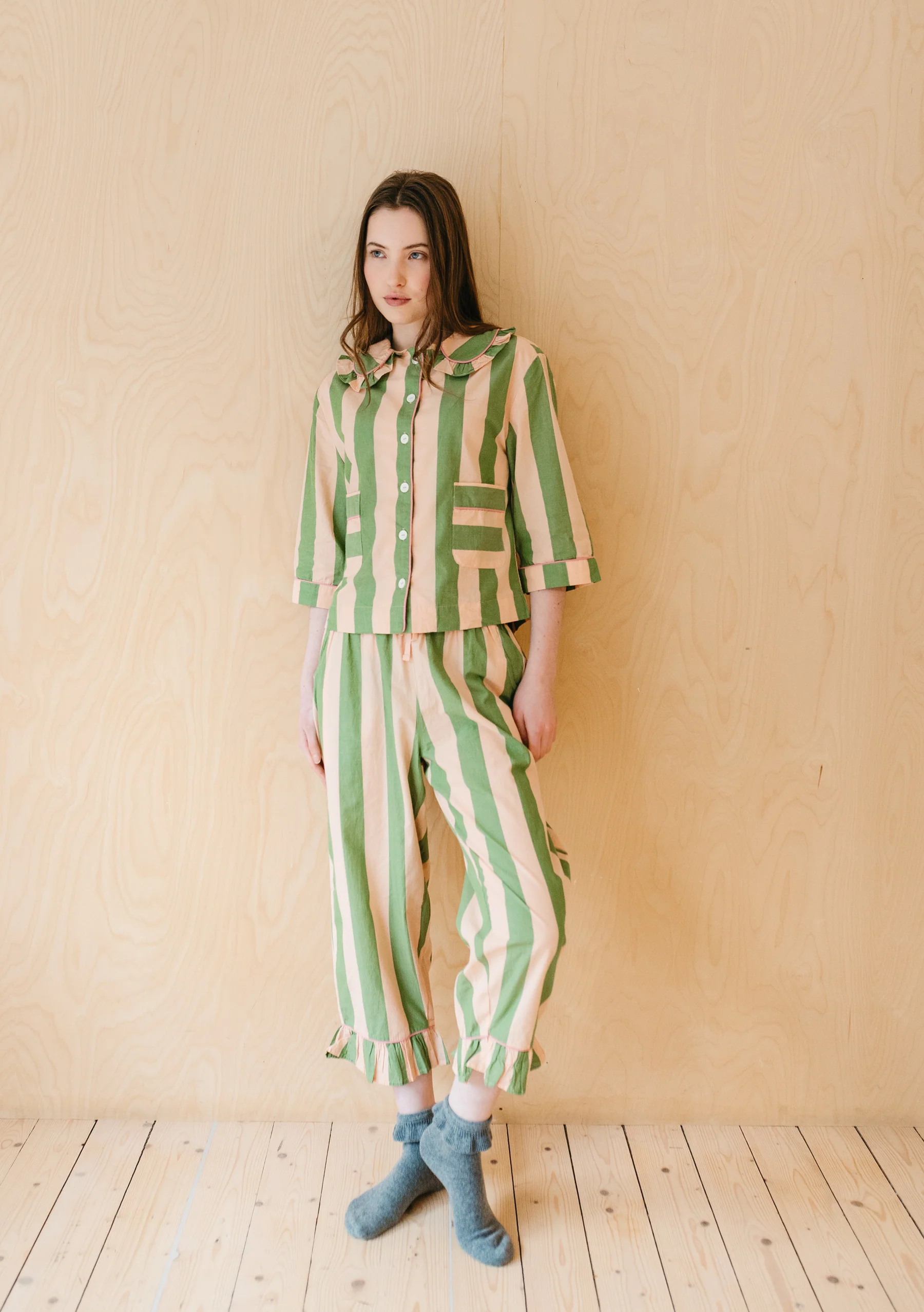 Cotton Pyjamas – Green Stripe