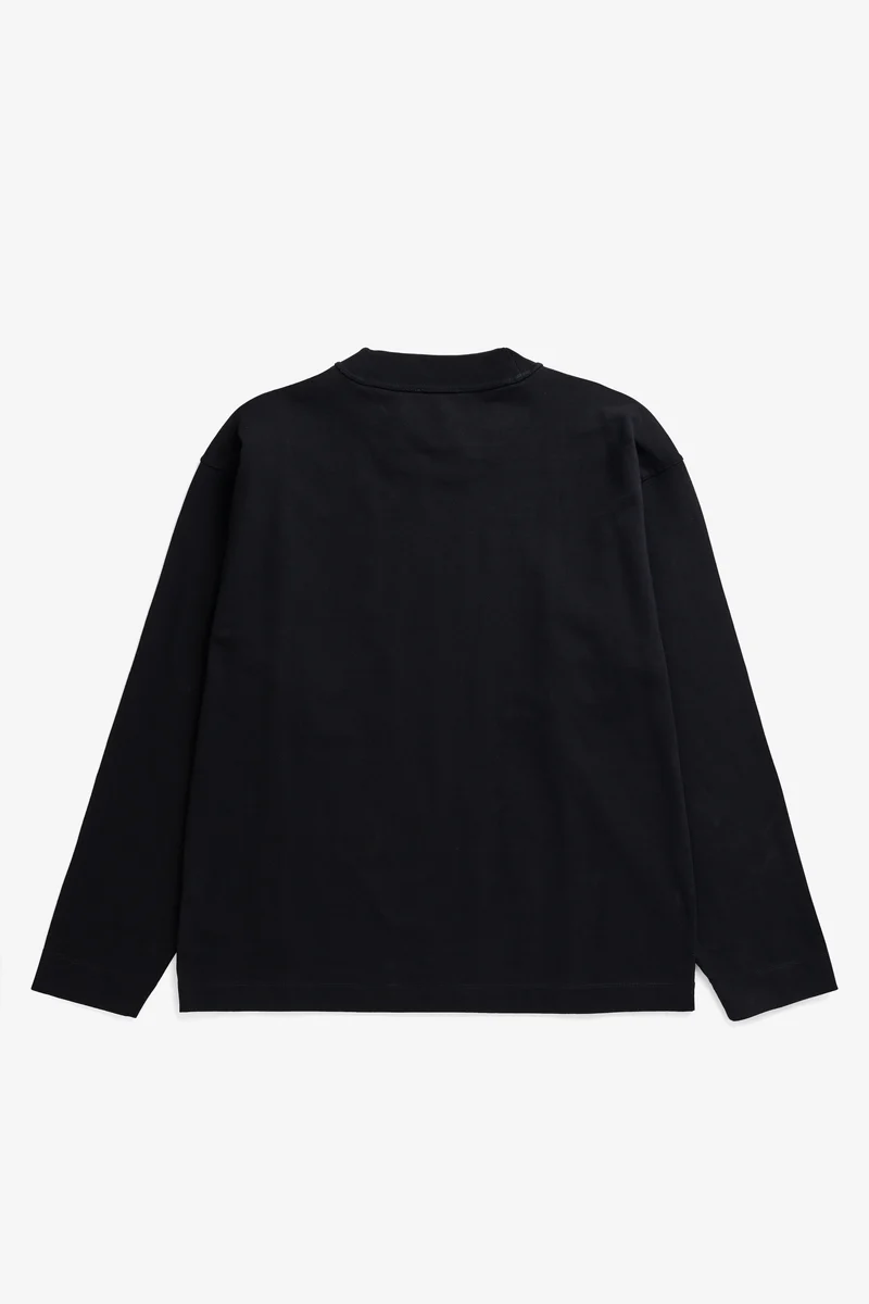 A relaxed fitting longsleeve t-shirt cut from an organic compact heavyweight cotton jersey. It features a wide ribbed binding at the neck, twin needle stitching details throughout and a branded tab at the front hem.