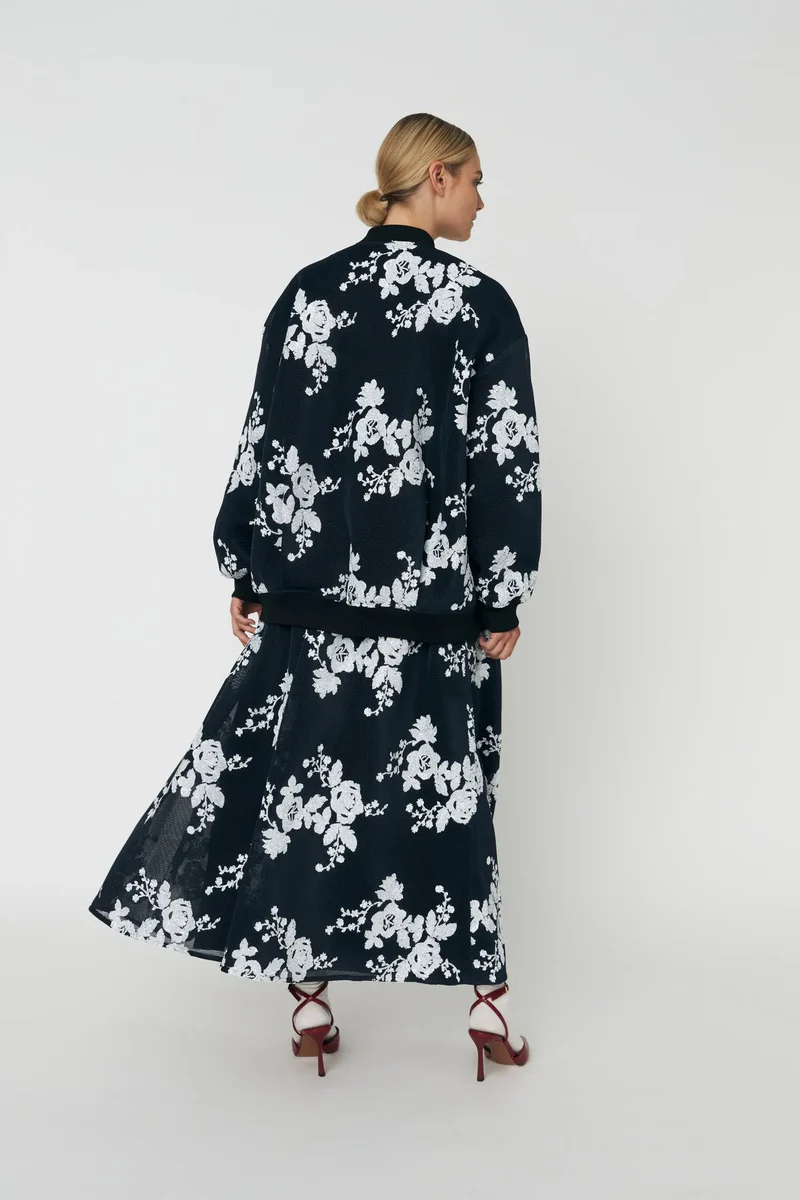 Midi-length made in mesh and decorated with sequin flowers. The skirt has an A-line shape and an elasticated waist. Finished with a lining for comfort and coverage.